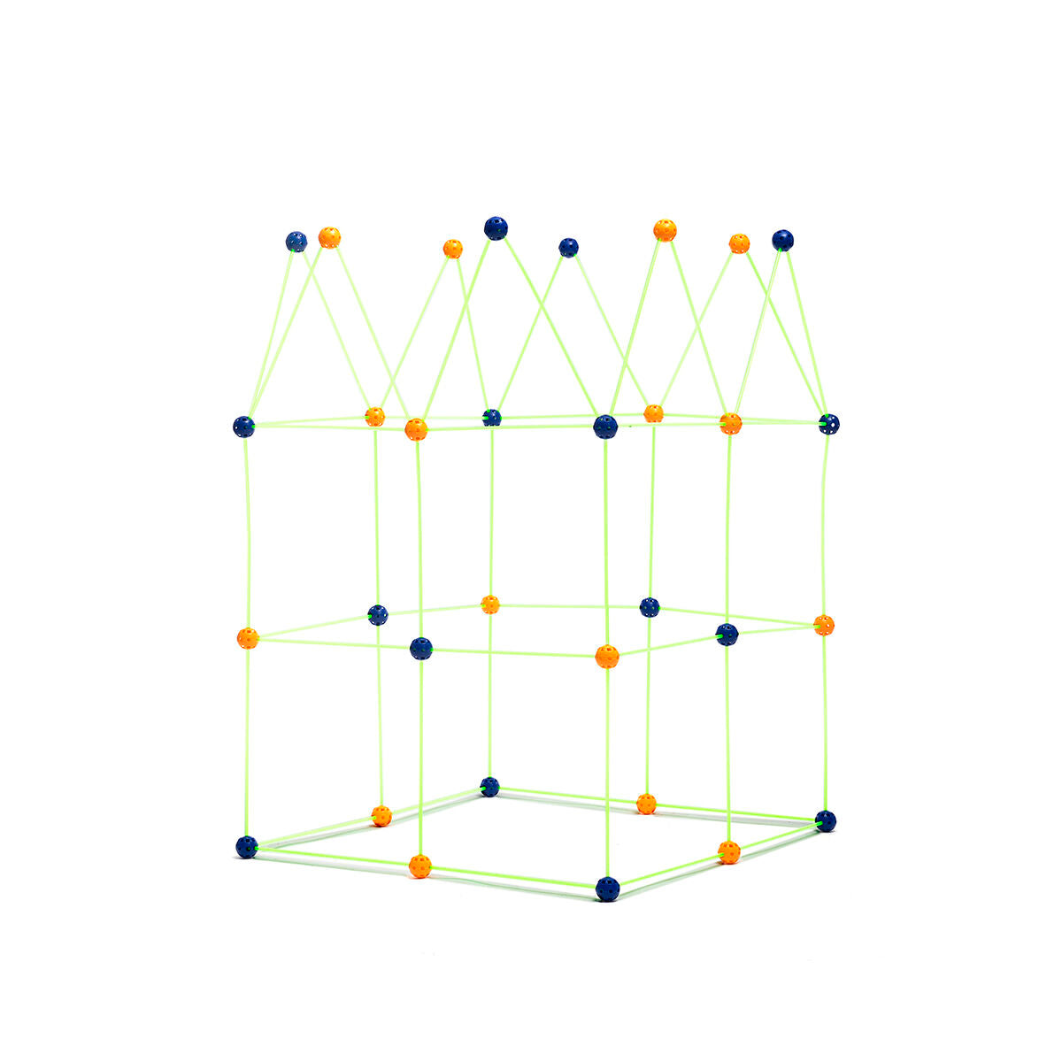 - Monia erilaisia rakenteita: lasten linnoituksen rakennussetillämme voi rakentaa erilaisia rakennuksia liittämällä pallot ja tangot yhteen: iglut, talot, avaruusalukset, teltat, tiipiit jne. Lisäksi suojakankaan voi suojan rakennuksen päälle sen asetuksiksi ja sisätilan suojaksi.