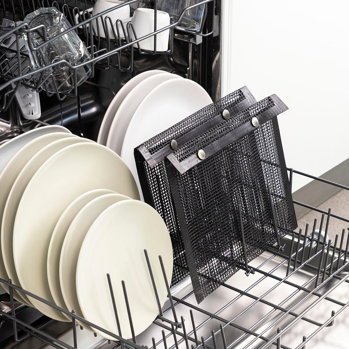 2 grilliverkkopussia, täydellisiä vihannesten ja muiden pienten ruokien grillaamiseen – estää ruokien tarttumisen, tippumisen ja palamisen. Käytännöllisiä ja helppokäyttöisiä. Laita grillattavat pussiin ja pussi ritilälle (ei koskaan suoraan liekkeihin). Verkkopussin läpäisevä savu parantaa ruoan kypsymistä ja makua. Ruoka paistuu helposti molemmin puolin kääntämällä koko pussia. Grillattavat pysyvät tallessa pussin sisällä ruoanlaiton ajan ja kun ruoka on valmista, ne on helppo ottaa pois pussin tarttumattoman pinnan ansiosta. Verkkopussit voidaan pestä näppärästi pesukoneessa. Hygieenisempi ja tehokkaampi tapa grillata.